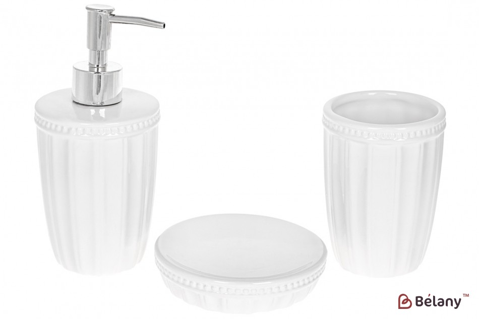 Набор для ванной (3 предмета): дозатор 390мл, стакан для зубных щеток 390мл, мыльница, цвет - белый