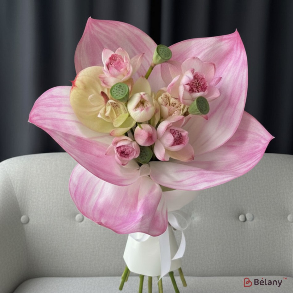 Задача корейской упаковки подчеркнуть элегантность букета и быть гармоничным дополнением.