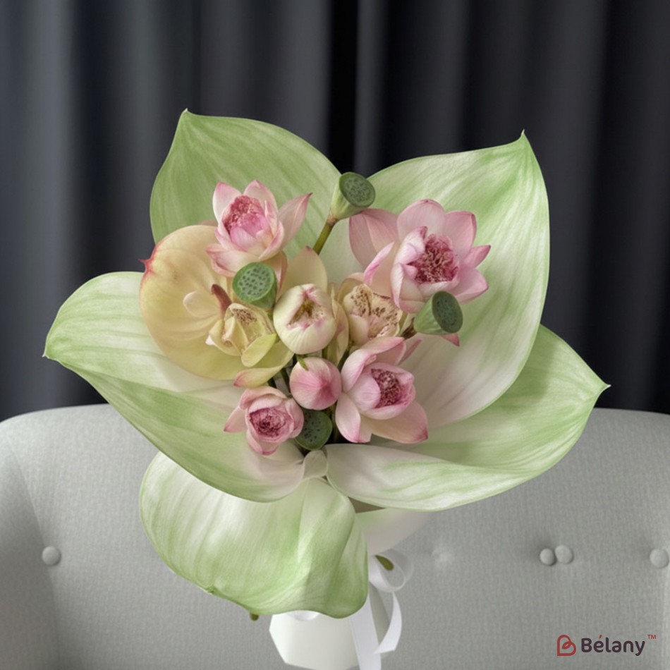 Задача корейской упаковки подчеркнуть элегантность букета и быть гармоничным дополнением.