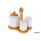 Фарфоровый набор для специй 17 см "Nouvelle"солонка, перечница, бутылка для масла, бутылка для уксуса 170 мл на бамбуковой подставке