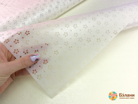 Калька "Цветочки" белая - отличный выбор для упаковки цветов с любовью и заботой. Подарите своим близким красоту и свежесть цветов, завернутых в этот прекрасный материал, и порадуйте их своим вкусом и вниманием к деталям.