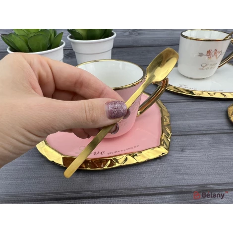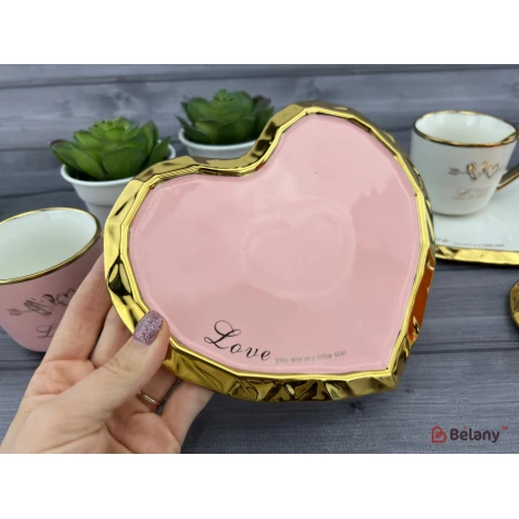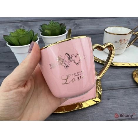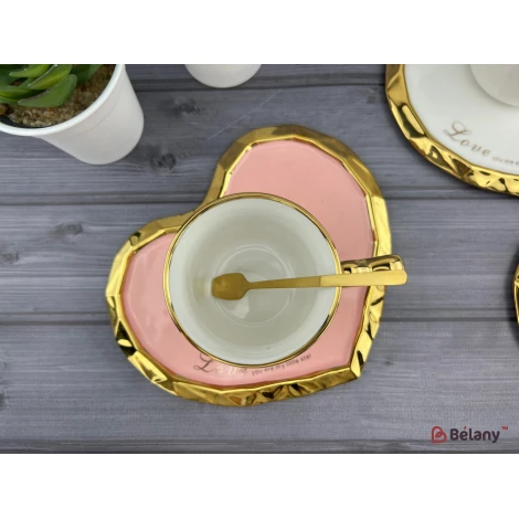 Керамическая чашка с блюдцем "Deep Gold heart" розовая