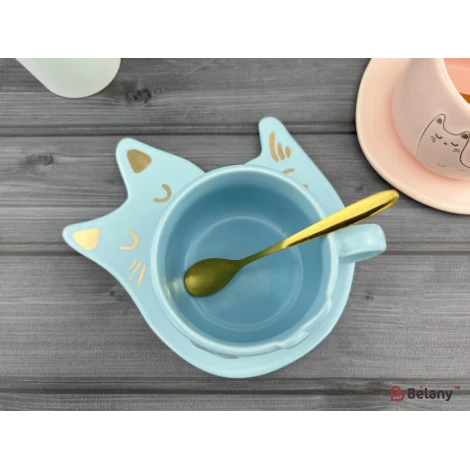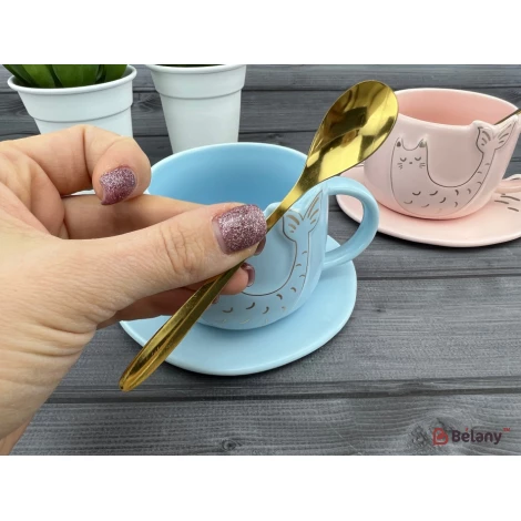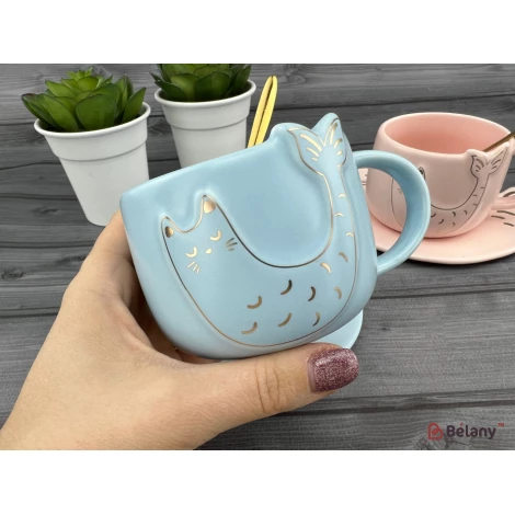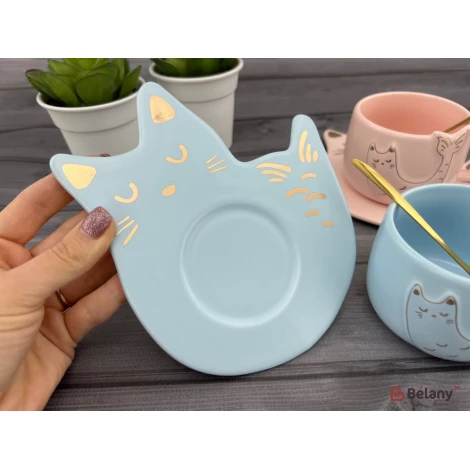 Керамическая чашка с блюдцем "Fishcat" голубая