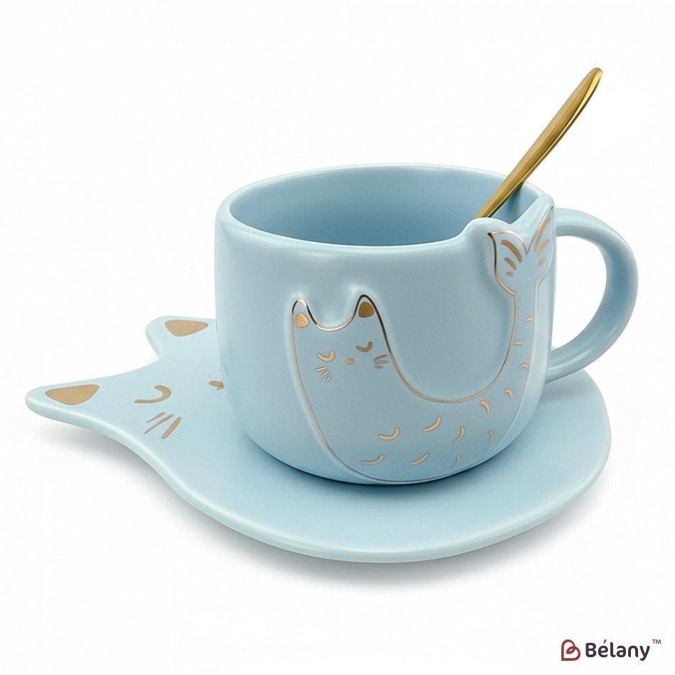 Керамическая чашка с блюдцем "Fishcat" голубая