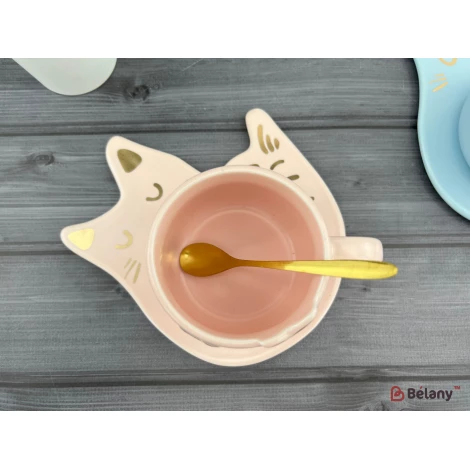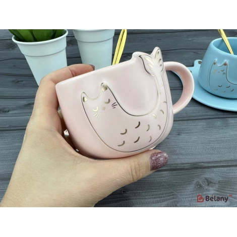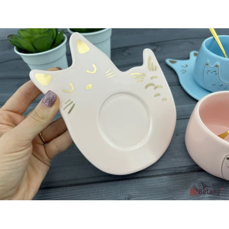 Керамическая чашка с блюдцем "Fishcat" розовая
