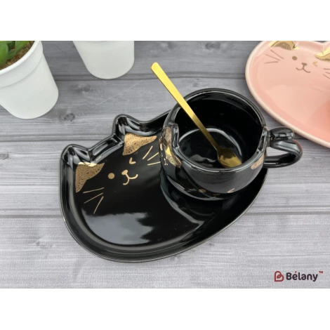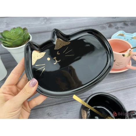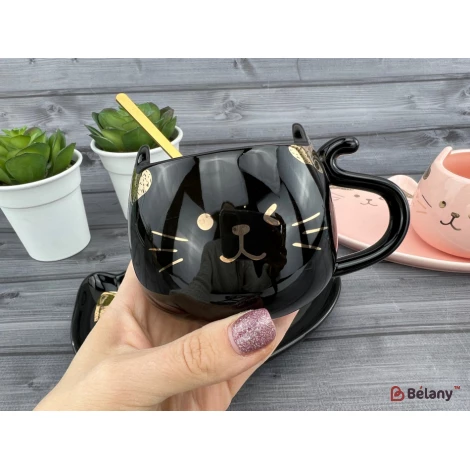 Керамическая чашка с блюдцем "Gold Ears" черная