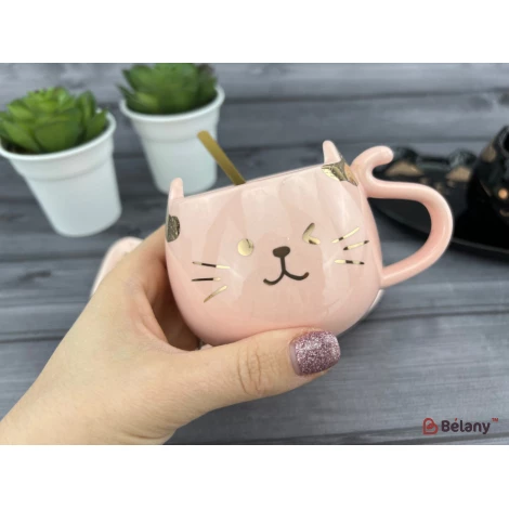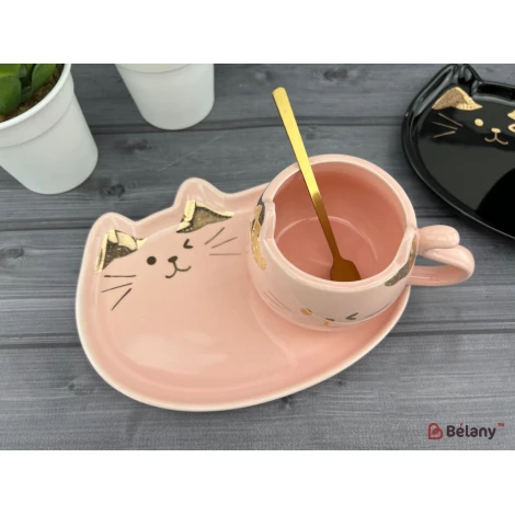 Керамическая чашка с блюдцем "Gold Ears" розовая