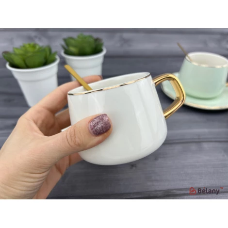 Керамическая чашка с блюдцем "Gold edge" белая