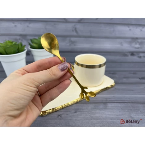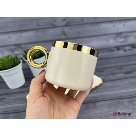 Керамическая чашка с блюдцем "Gold edge" кремовая