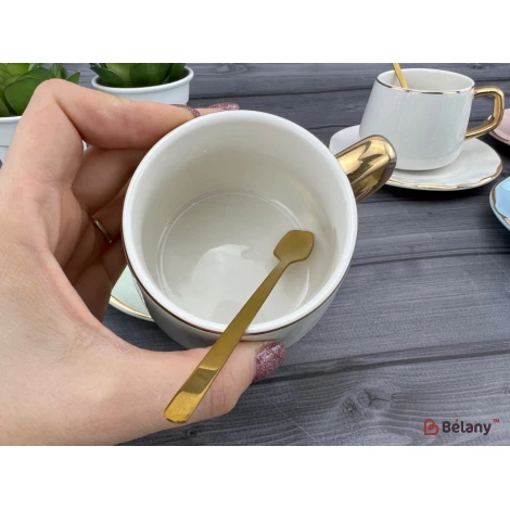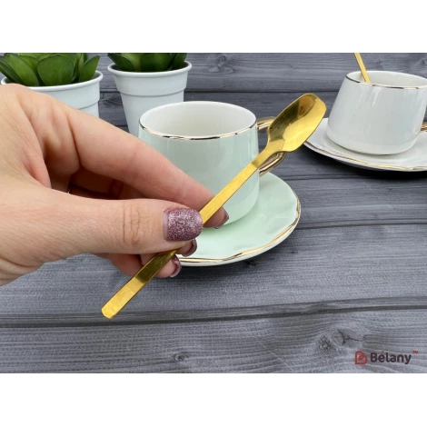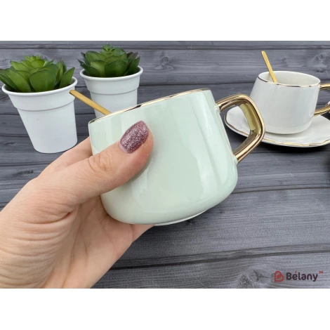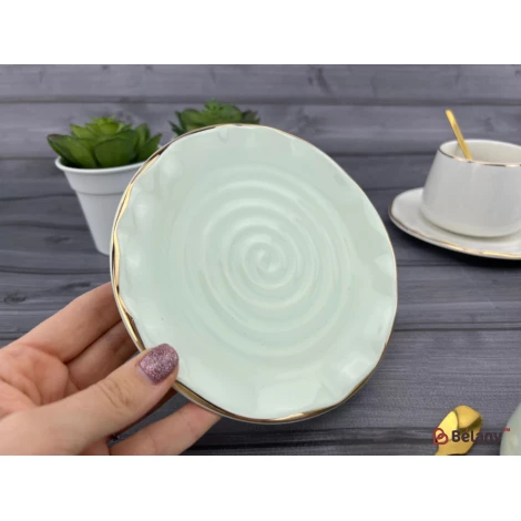 Керамическая чашка с блюдцем "Gold edge" ментол
