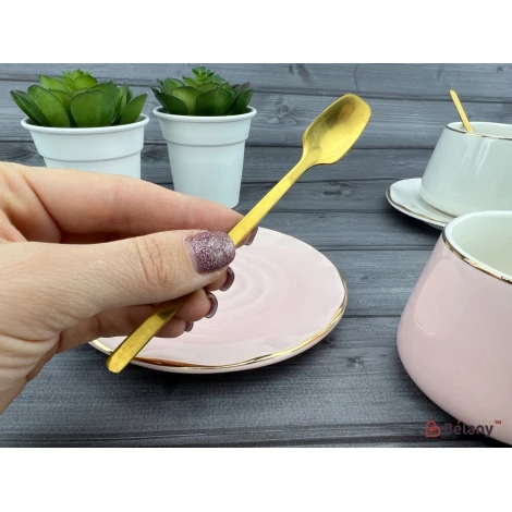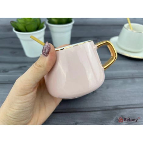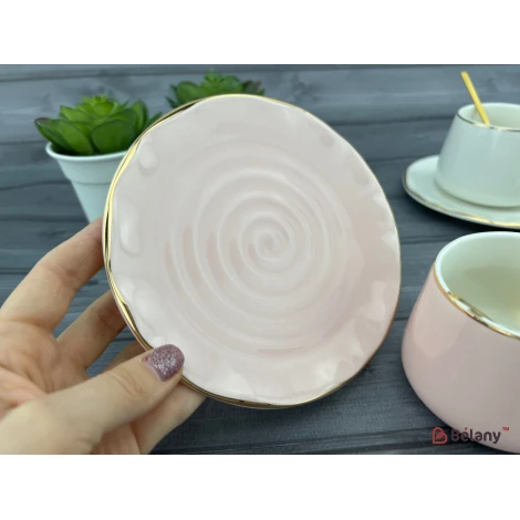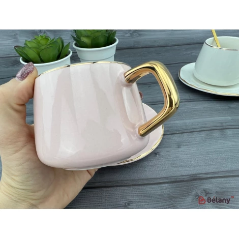 Керамическая чашка с блюдцем "Gold edge" розовая
