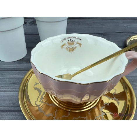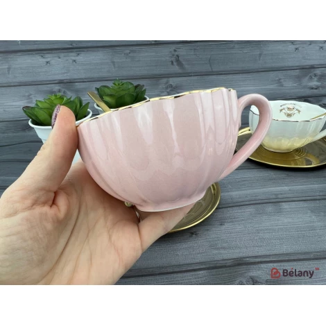 Керамическая чашка с блюдцем "Honnestly" розовая