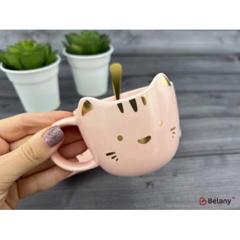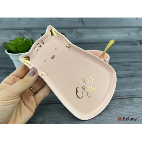 Керамическая чашка с блюдцем "Meow" розовая