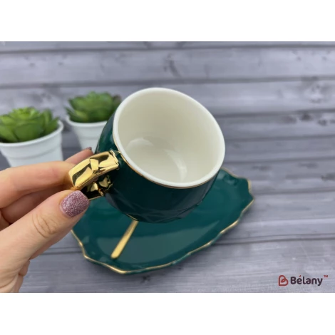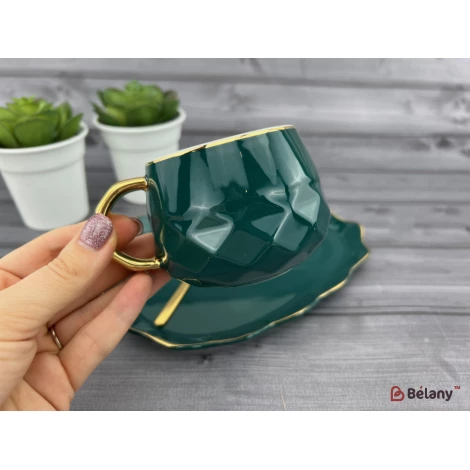 Керамическая чашка с блюдцем "Oyster" изумруд