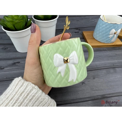 Керамическая чашка с блюдцем "Soft cup" зеленая