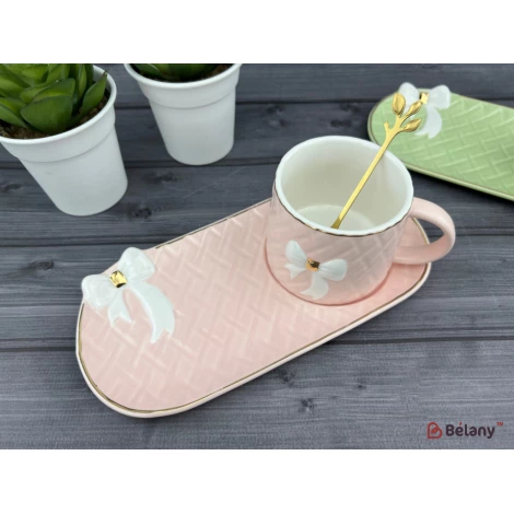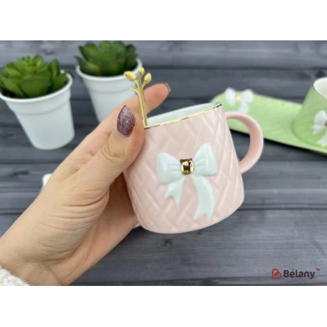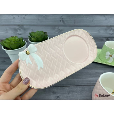 Керамическая чашка с блюдцем "Softy bow" розовая
