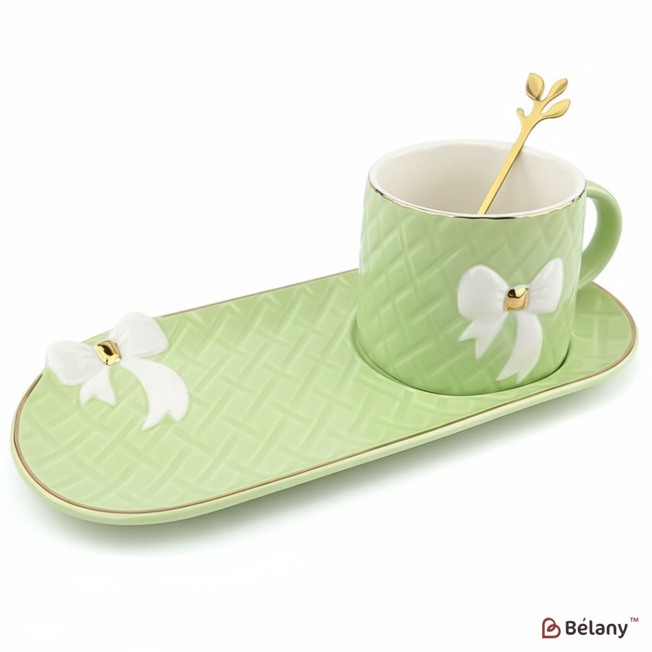 Керамическая чашка с блюдцем "Softy bow" зеленая