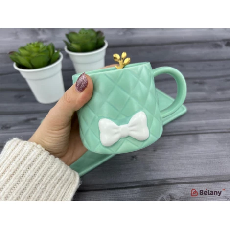 Керамическая чашка с блюдцем "Softy" мятная