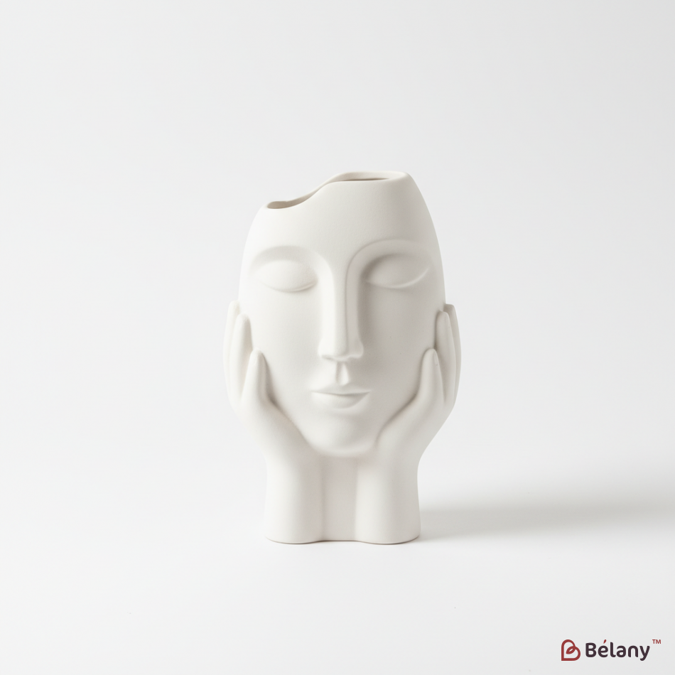 Керамическая ваза "Лицо с руками" белая S 42-44