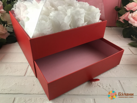 Коробка с выдвижным ящичком "Под руку с бантом" красная