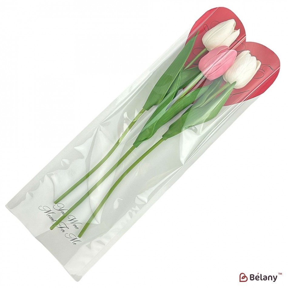 Пакет имеет привлекательный дизайн "Dimensional", который добавит шик и элегантность вашему букету. Он легко складывается и закрывается, обеспечивая надежную защиту цветов от внешних воздействий. Кроме того, благодаря прозрачной пленке, можно полностью увидеть цветы внутри пакета, что делает его отличным выбором для подарочной упаковки.