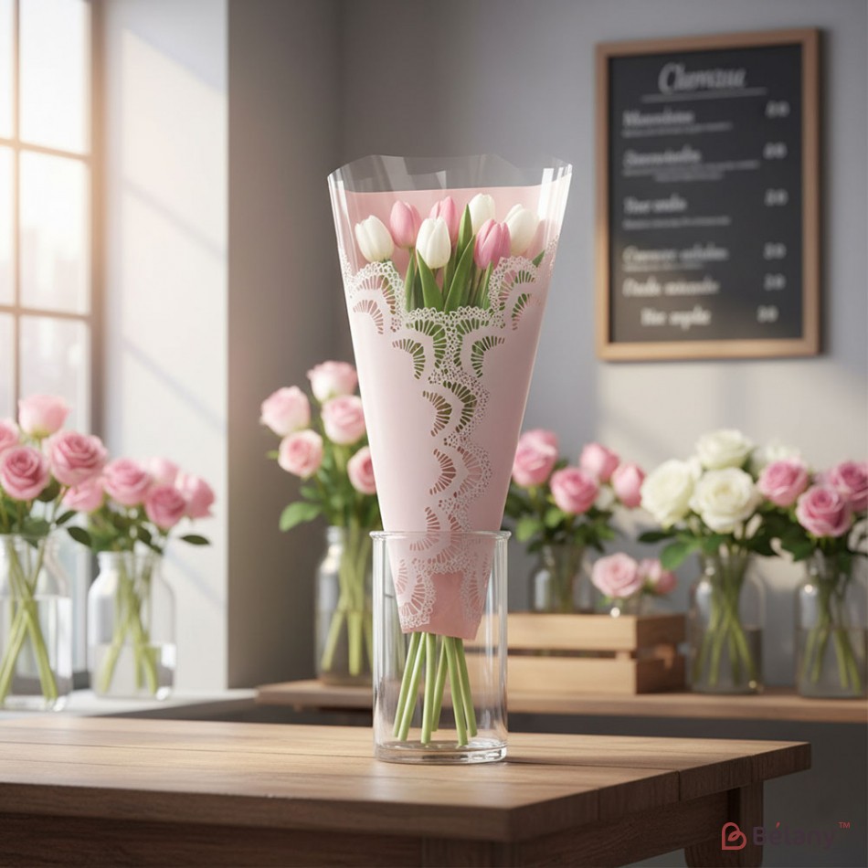 Задача корейской упаковки подчеркнуть элегантность букета и быть гармоничным дополнением.