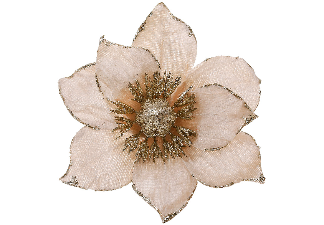Оксамитова квітка Магнолія 15см, колір - бежевий з гліттером