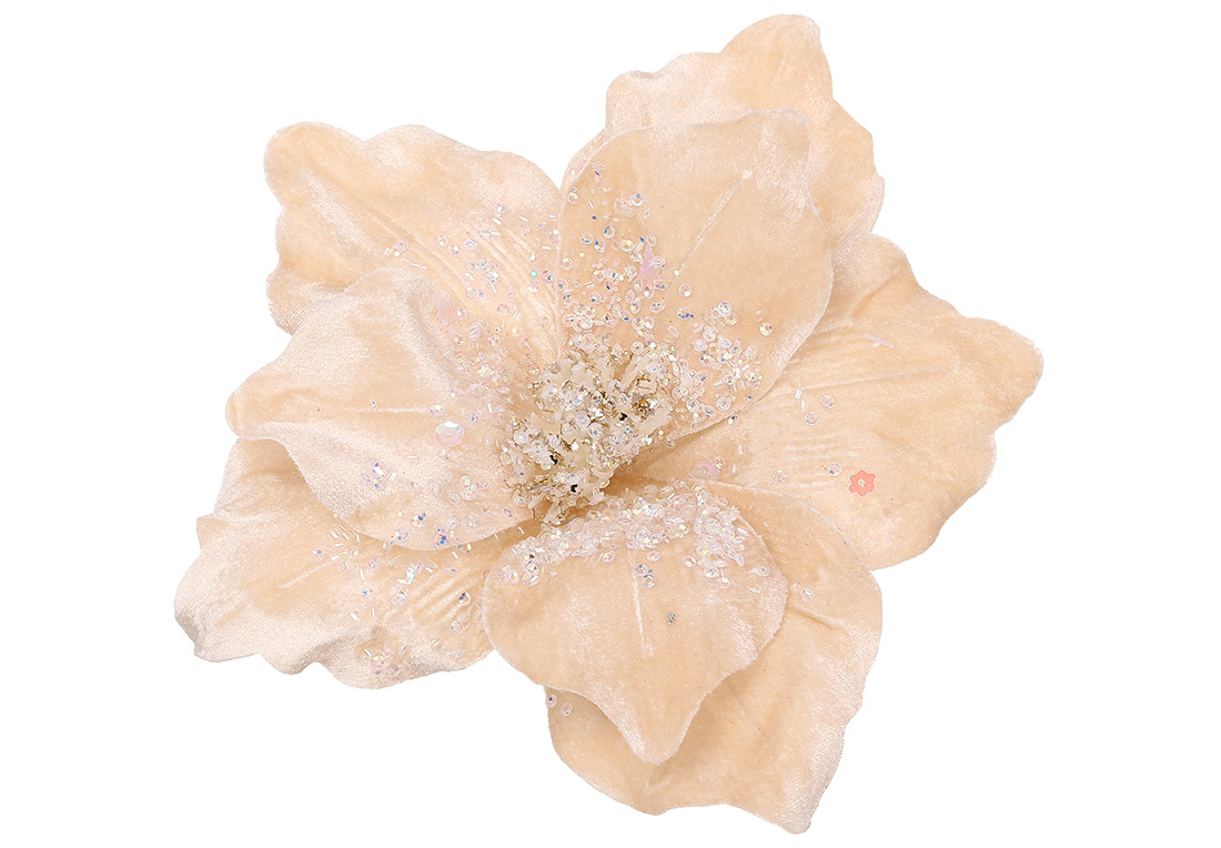 Оксамитова квітка Магнолія з декором з бісеру 25см, колір - шампань