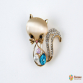 Оригинальная брошь с застежкой-булавкой. Вся поверхность броши усеяна высококачественными стеклянными стразами. Гальванический метод нанесения покрытия позволяет не опасаться окисления. А ювелирная утонченность и художественная изысканность будут элегантно дополнять образ.