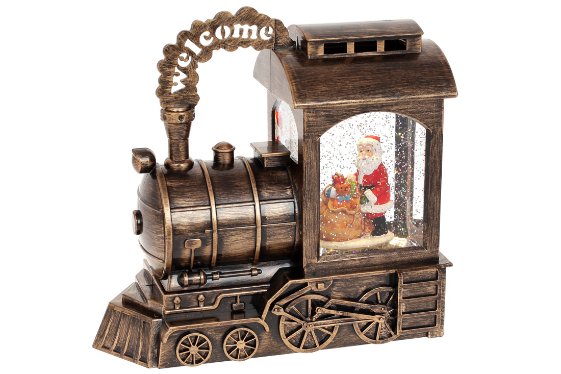 Декор новорічний Паровоз Санти, з LED підсвічуванням і гліттером, що летить, 24.5см