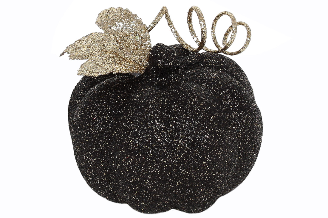 Декор Гарбуз 10см з гліттерним покриттям, колір - чорно-золотий