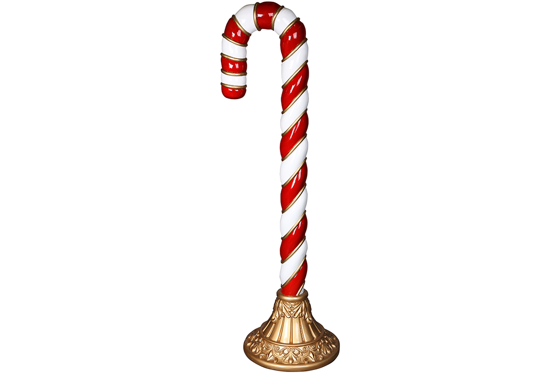 Декоративна фігура Льодяник карамельний "Посох" 42*34*122см, колір - червоно-білий із золотом