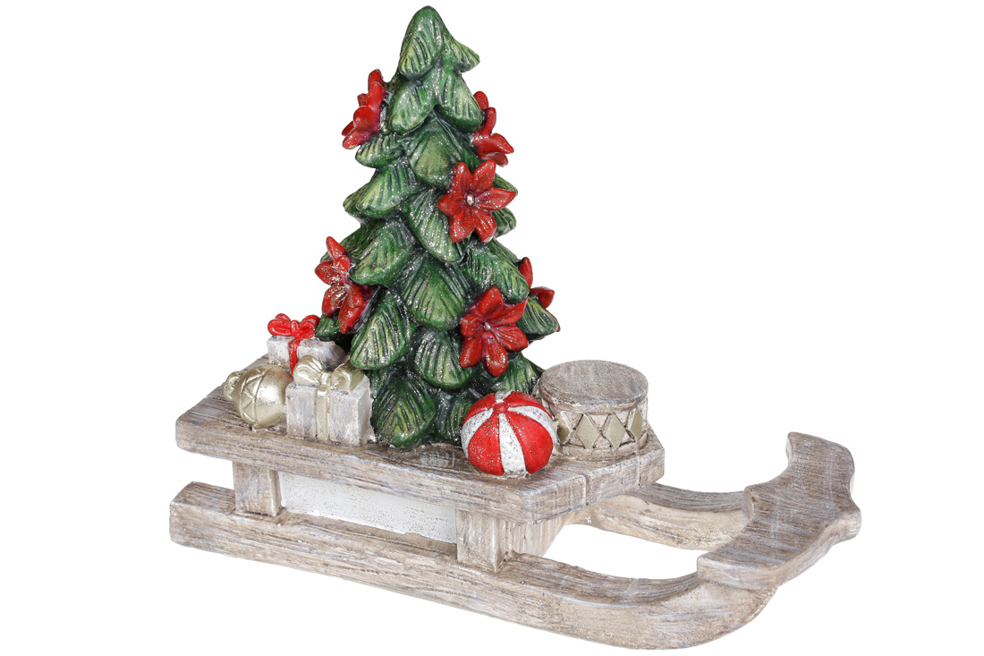 Декоративна фігура Сани з ялинкою, 38см, колір - беж із зеленим та червоним