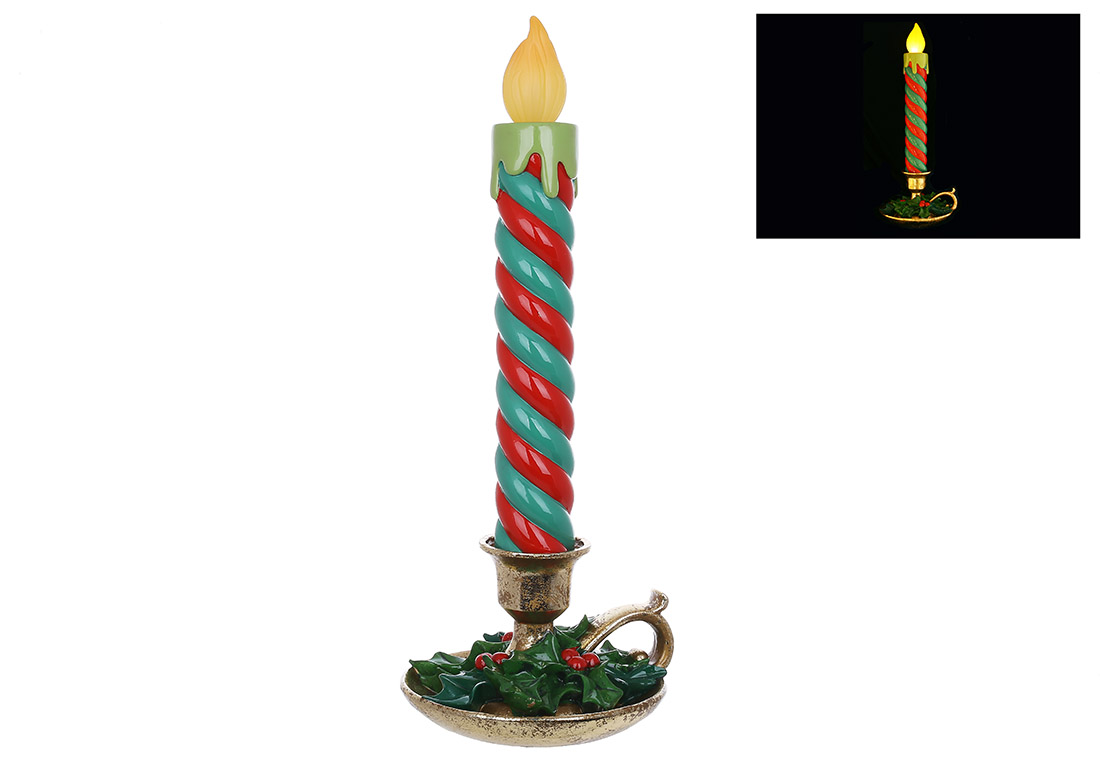 Декоративна фігура Свічка в золотому свічнику з LED підсвічуванням на батарейках (3*AA), 45см