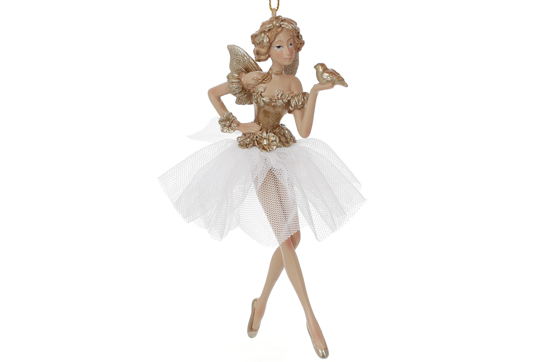 Декоративна фігурка на підвісі Фея з пташкою 15.5см, колір - золото з білим