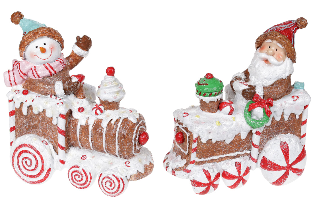 Декоративна фігурка Пряниковий паровоз 17см, 2 дизайни - з Сантою та сніговиком