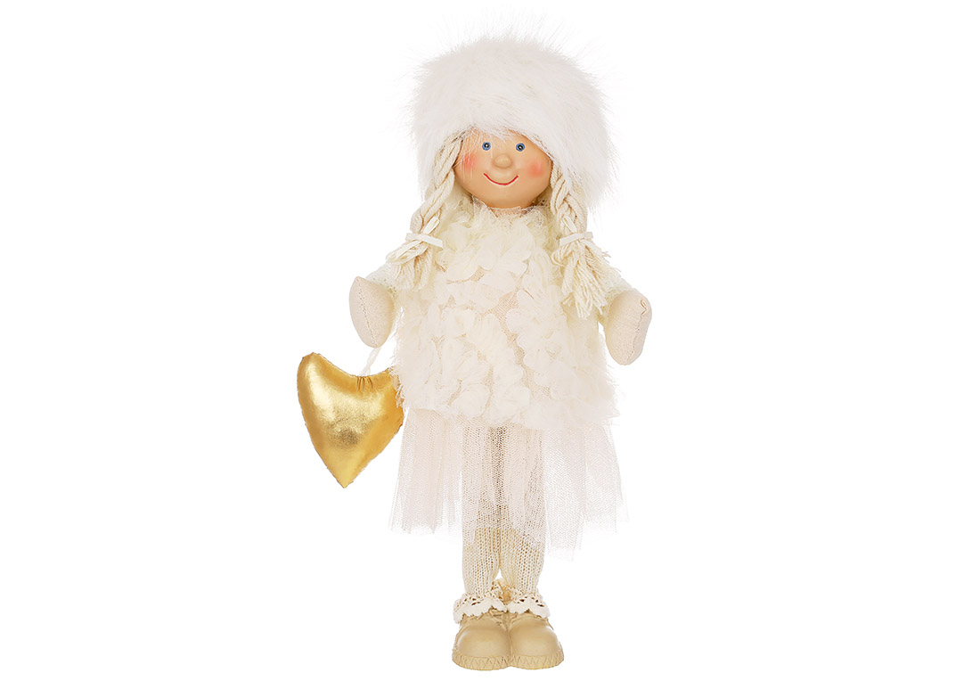 Декоративна лялька Дівчинка в хутряній шапці, 33см, колір - бежевий