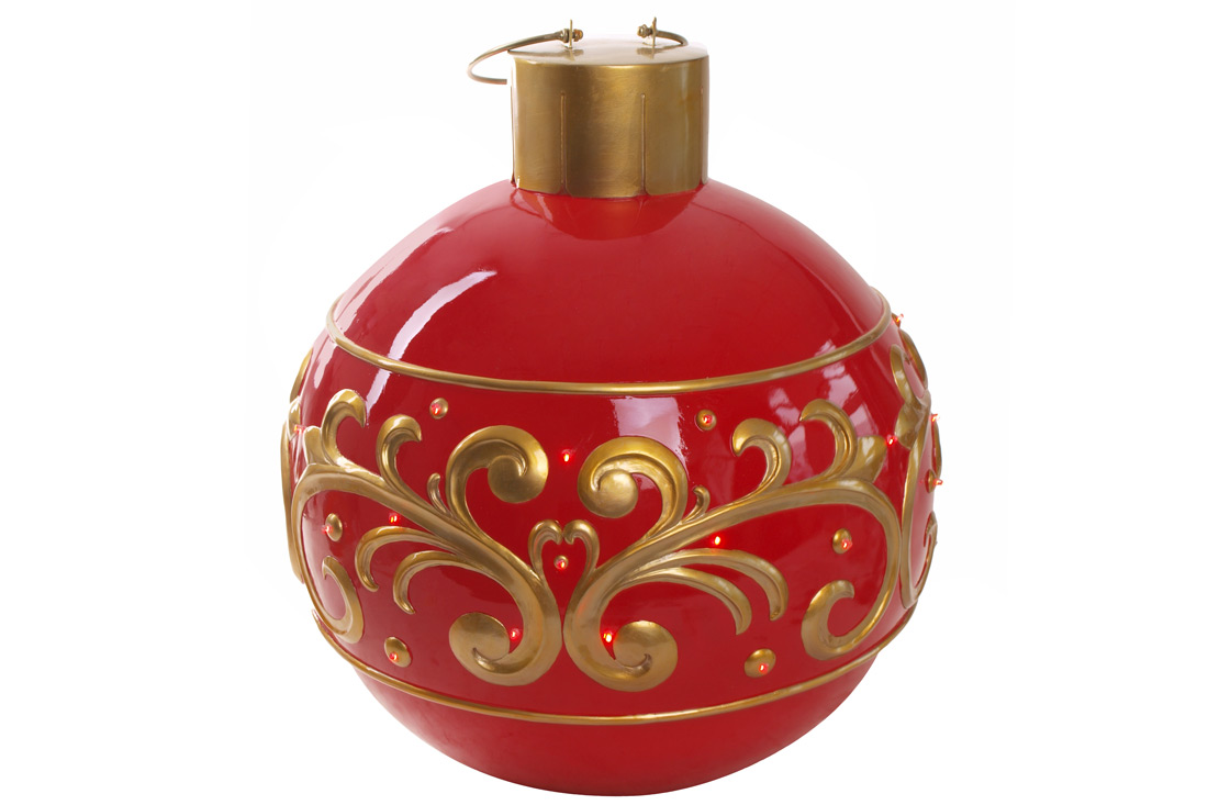 Декоративна підлогова фігура з LED підсвічуванням Ялинкова куля, 64см, колір - червоний із золотим візерунком