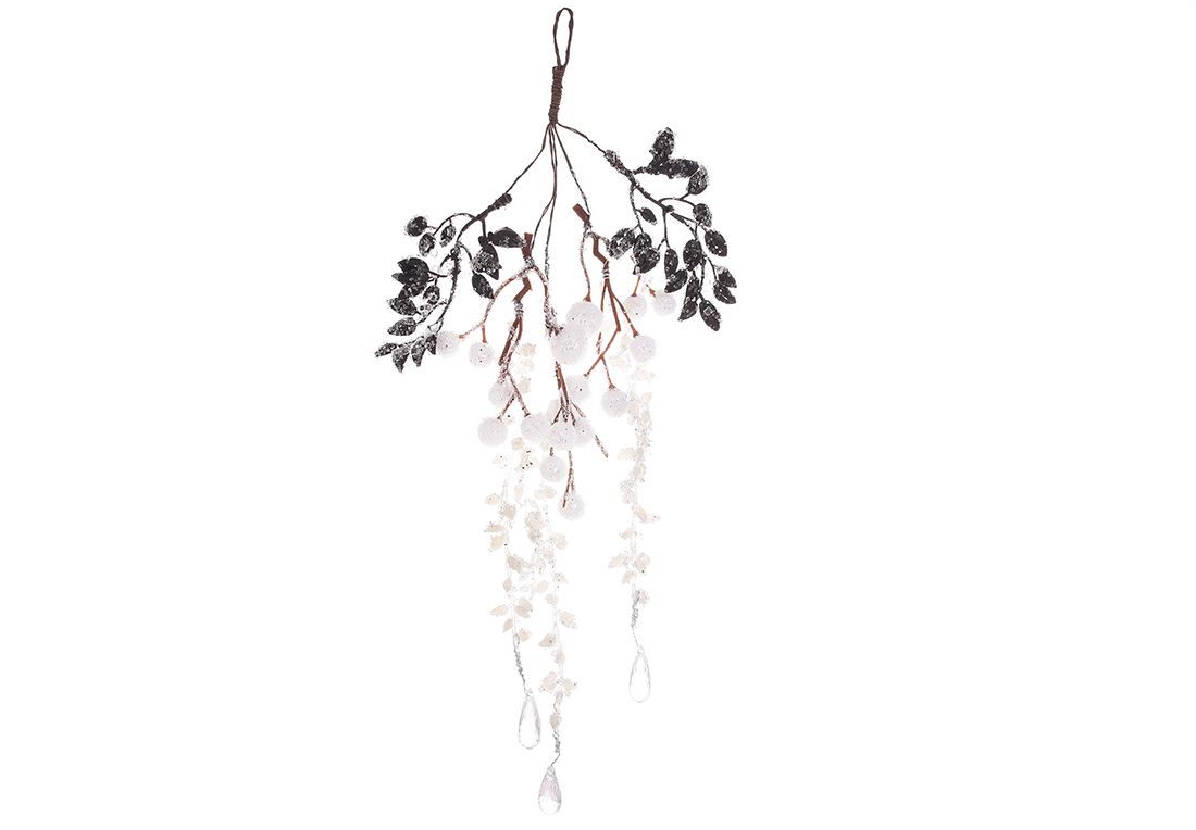 Декоративна підвіска з білими ягодами та акриловими краплями 38см.