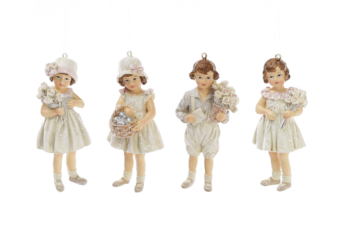 Декоративна підвісна фігурка Дітки з квітами 11см, 4 дизайни, колір - ніжний крем