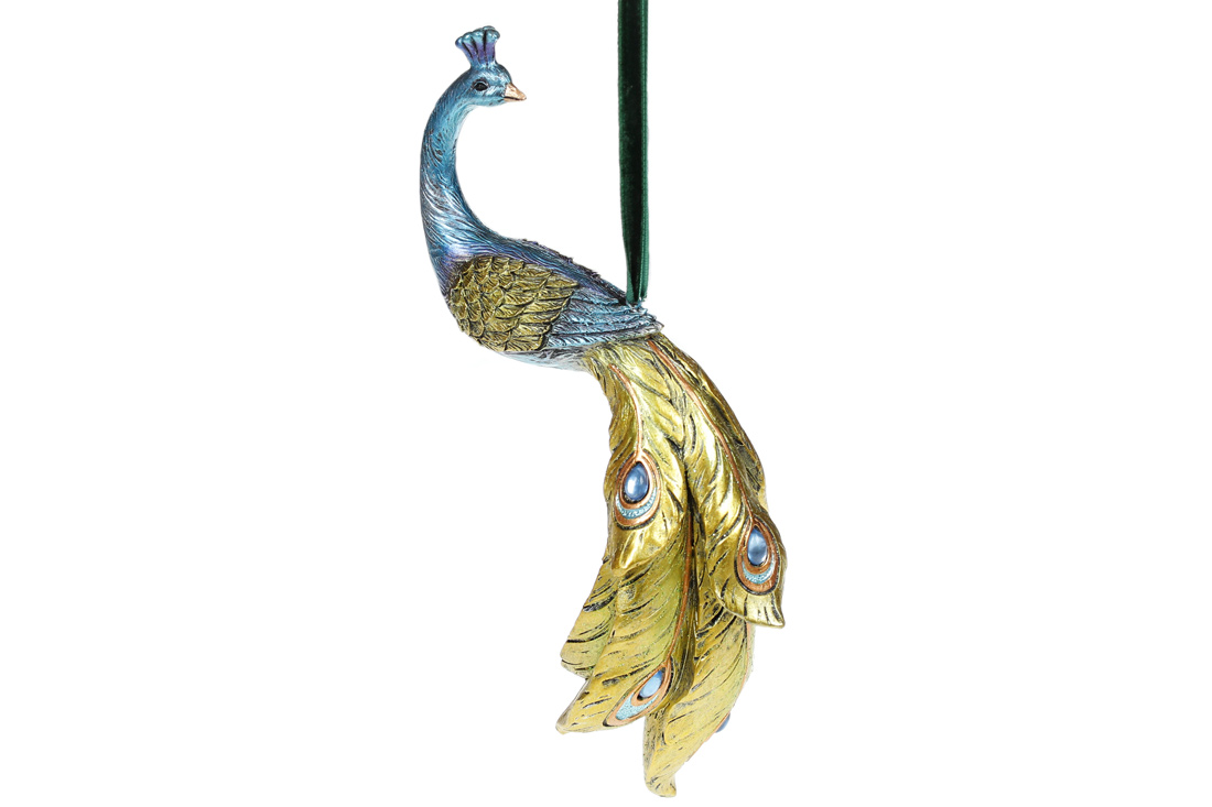 Декоративна підвісна фігурка Павич, 22см, колір - синій із золотом