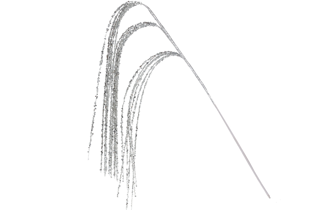 Декоративна спадаюча гілка в гліттері 97см, колір - срібло