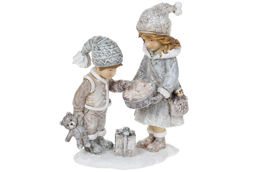 Декоративна статуетка Діти з подарунками, 12.5см, колір - бежево-сірий