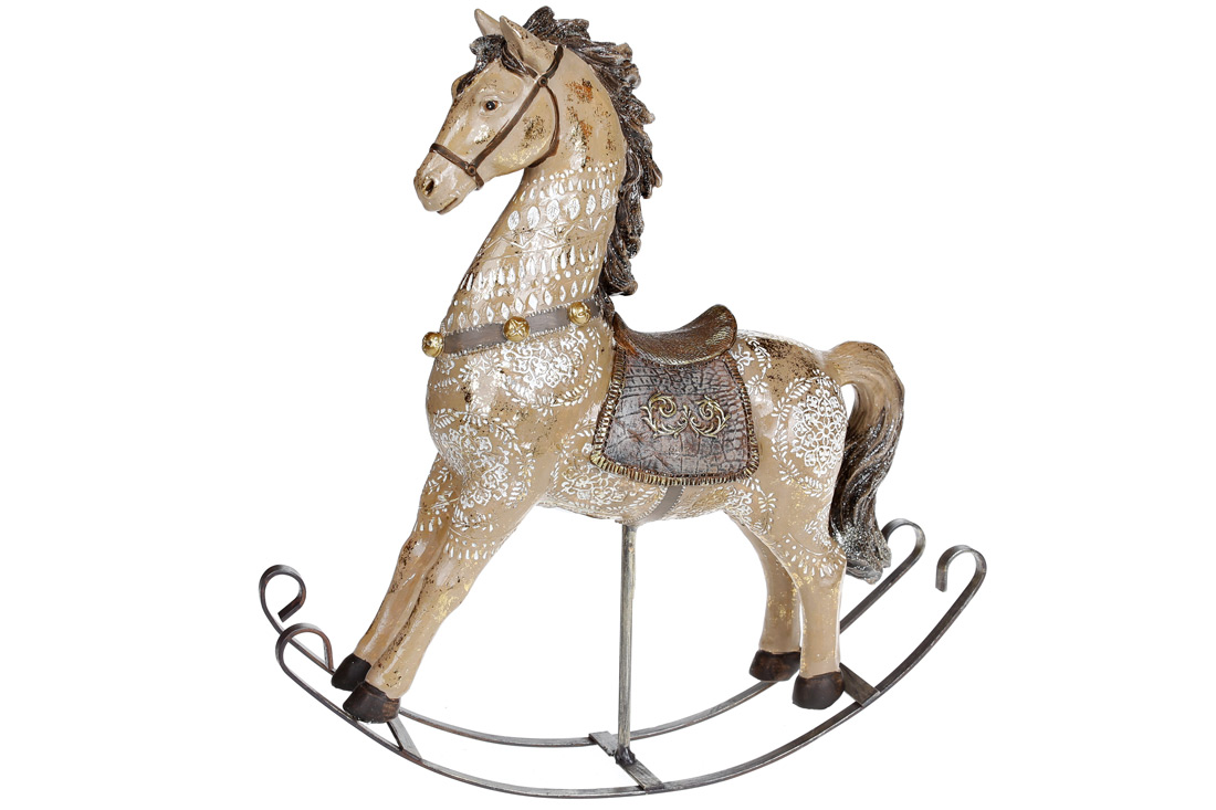 Декоративна статуетка Конячка-гойдалка, колір - коричневий із золотом, 30см