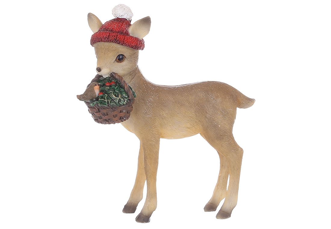 Декоративна статуетка Оленя з кошиком 12*6*15см, колір - коричневий