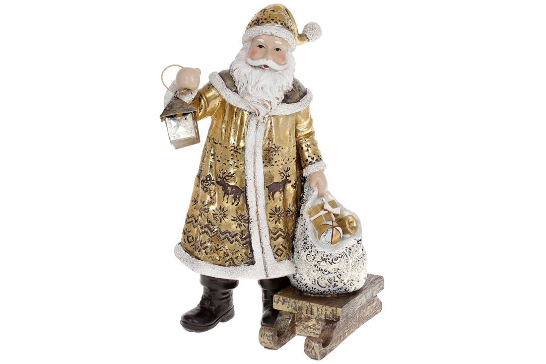 Декоративна статуетка Санта Клаус, 24.5см, колір - золотий