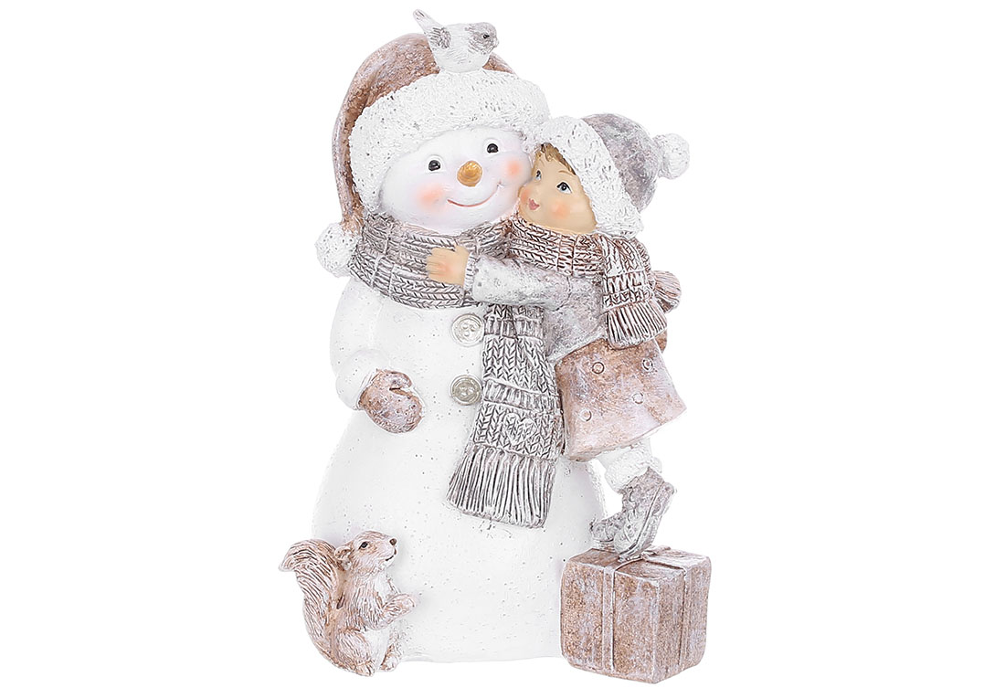 Декоративна статуетка Сніговик з дівчинкою 10*8.5*15.5см, колір - сірий з бежевим