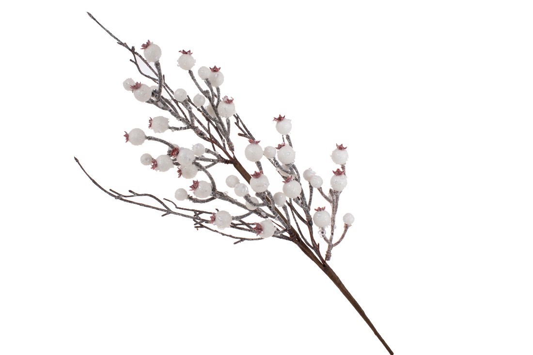 Декоративна гілка з білих ягід в інеї, 60см