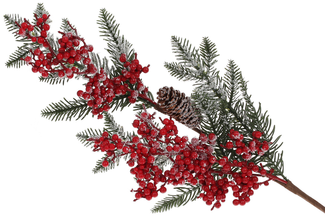 Декоративна гілка з хвої та червоних ягід з шишкою, 64см