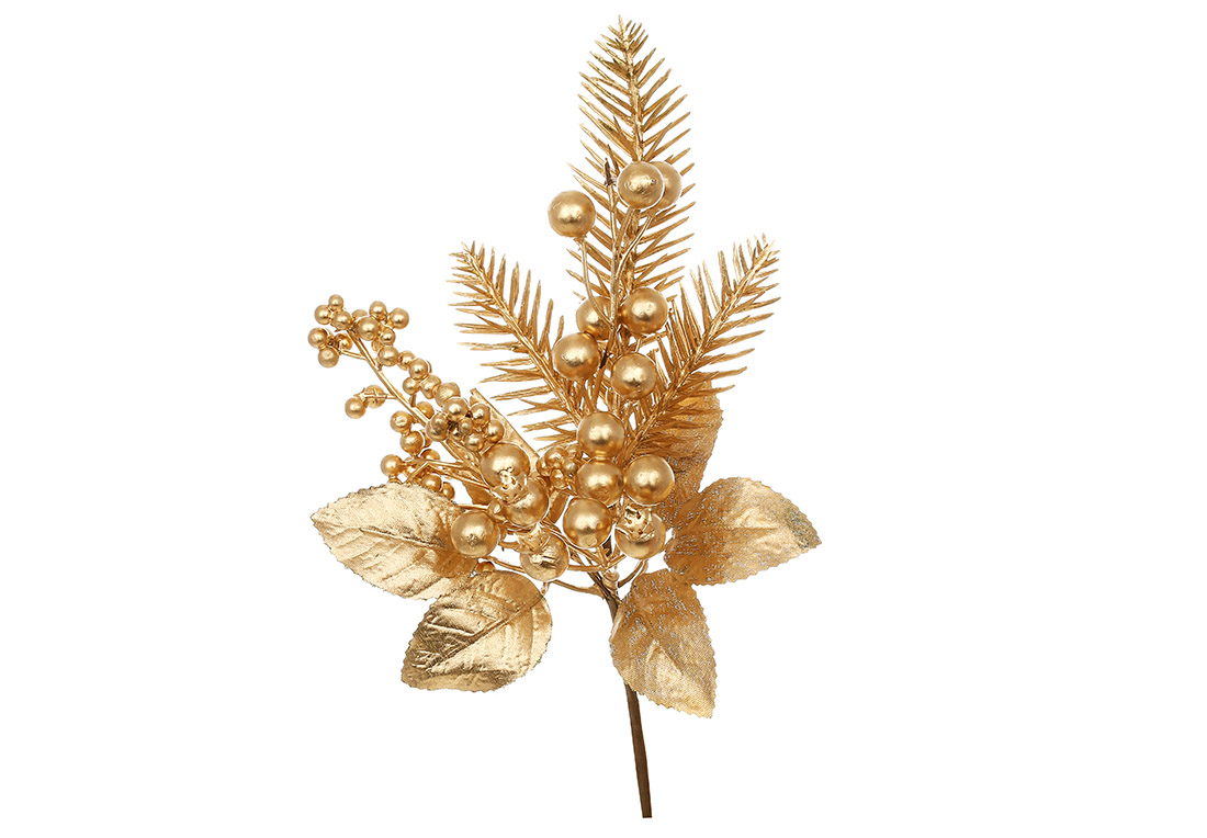 Декоративна гілка з ягід та листя 28см, колір - матове золото